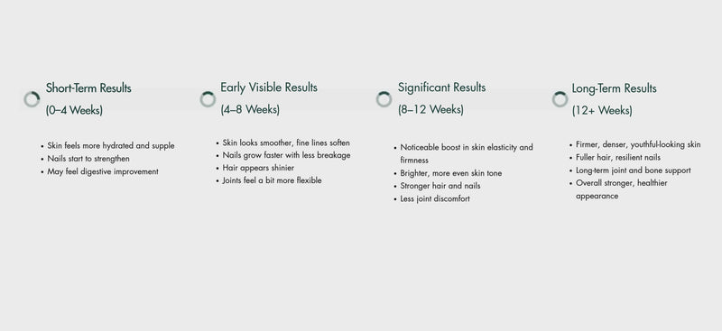 How long does it take to see results from your premium marine collagen powder, and what kind of results can I expect?