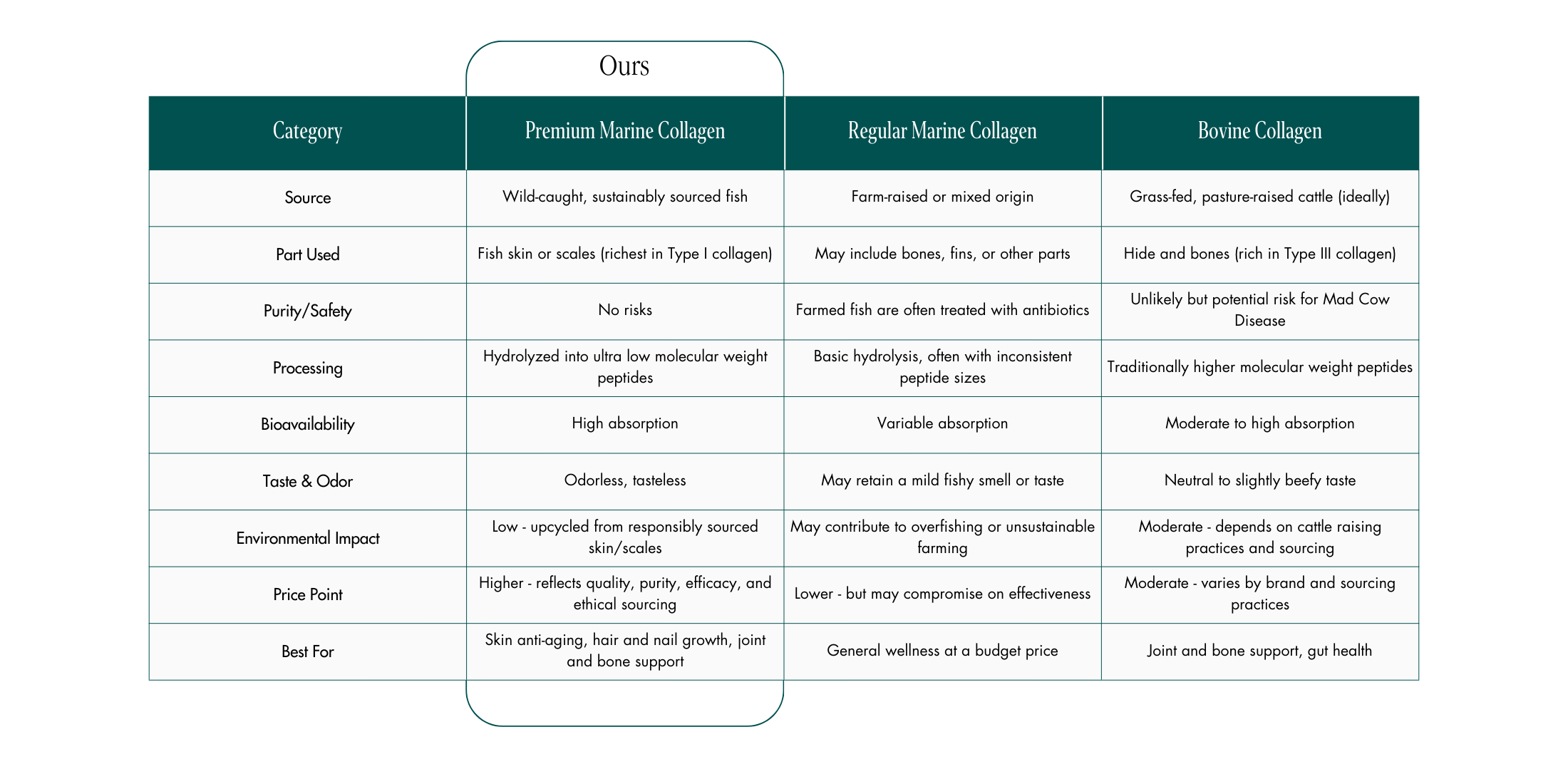 How does your premium marine collagen compare to bovine or porcine collagen?