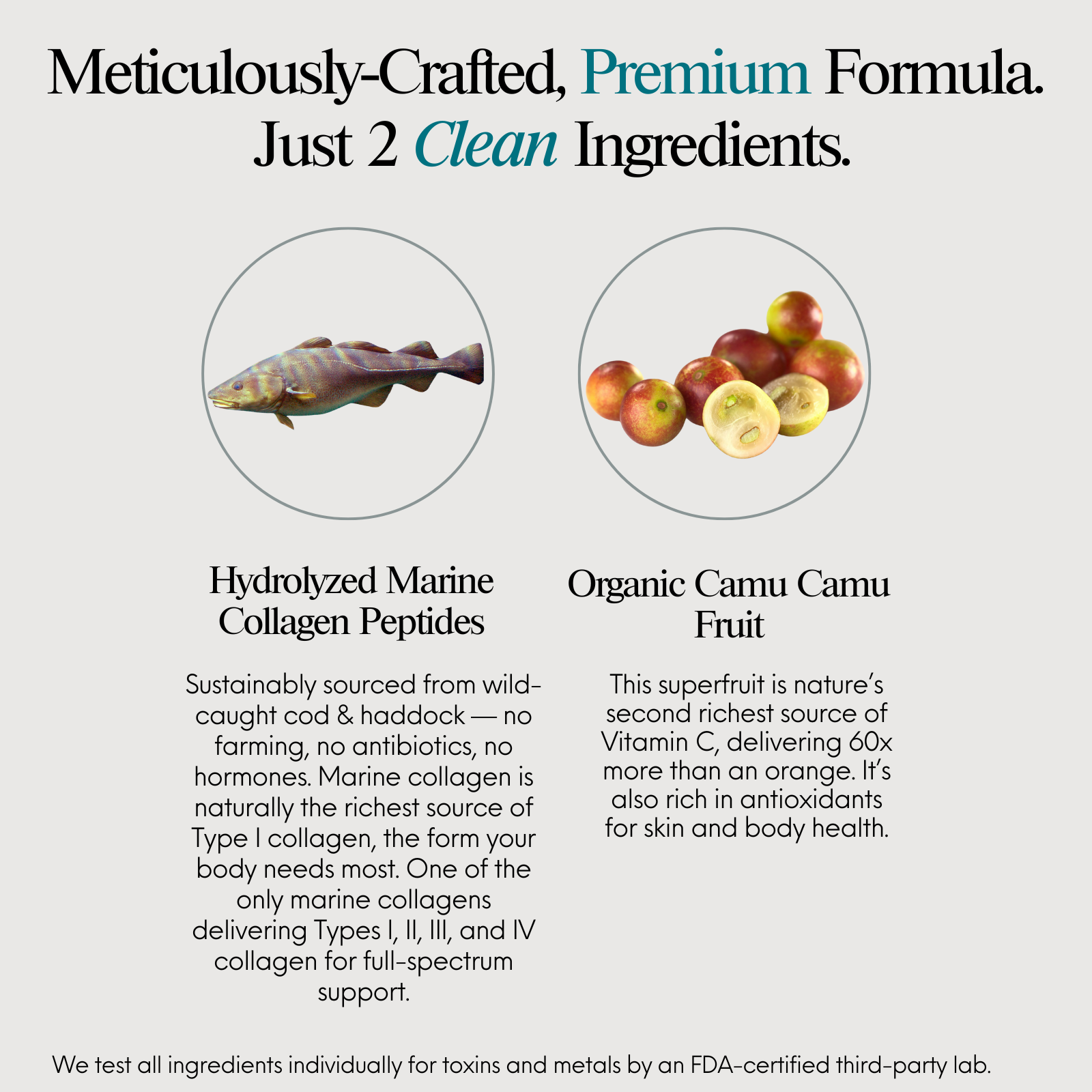 - 10g hydrolyzed, wild-caught marine collagen peptides per serving